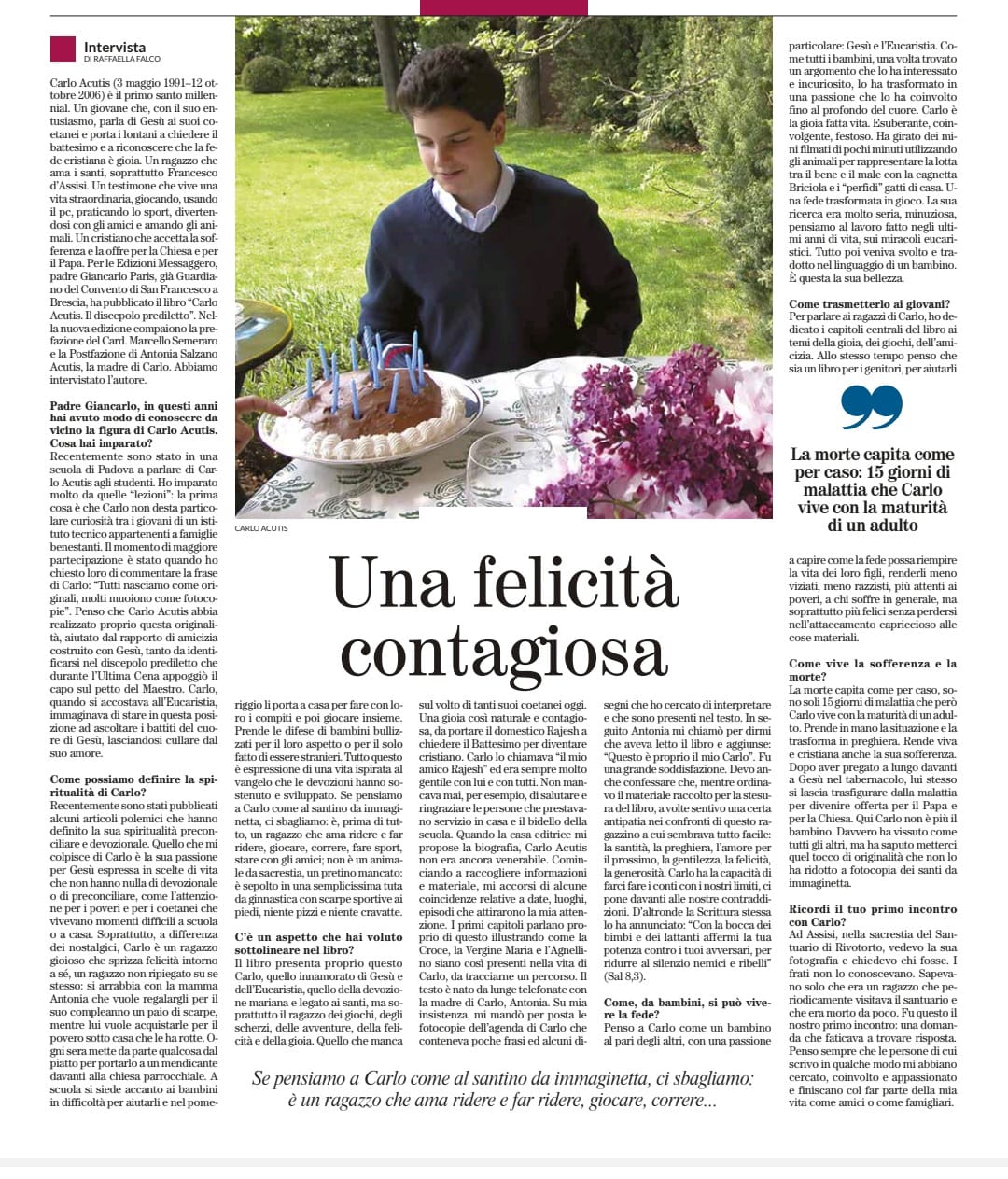 Nuovo edizione rivista e ampliata con l'aggiunta di una prefazione del card. Semeraro, prefetto del Dicastero per le cause dei santi e di una postfazione di Antonia Salzano Acutis (mamma di Carlo).